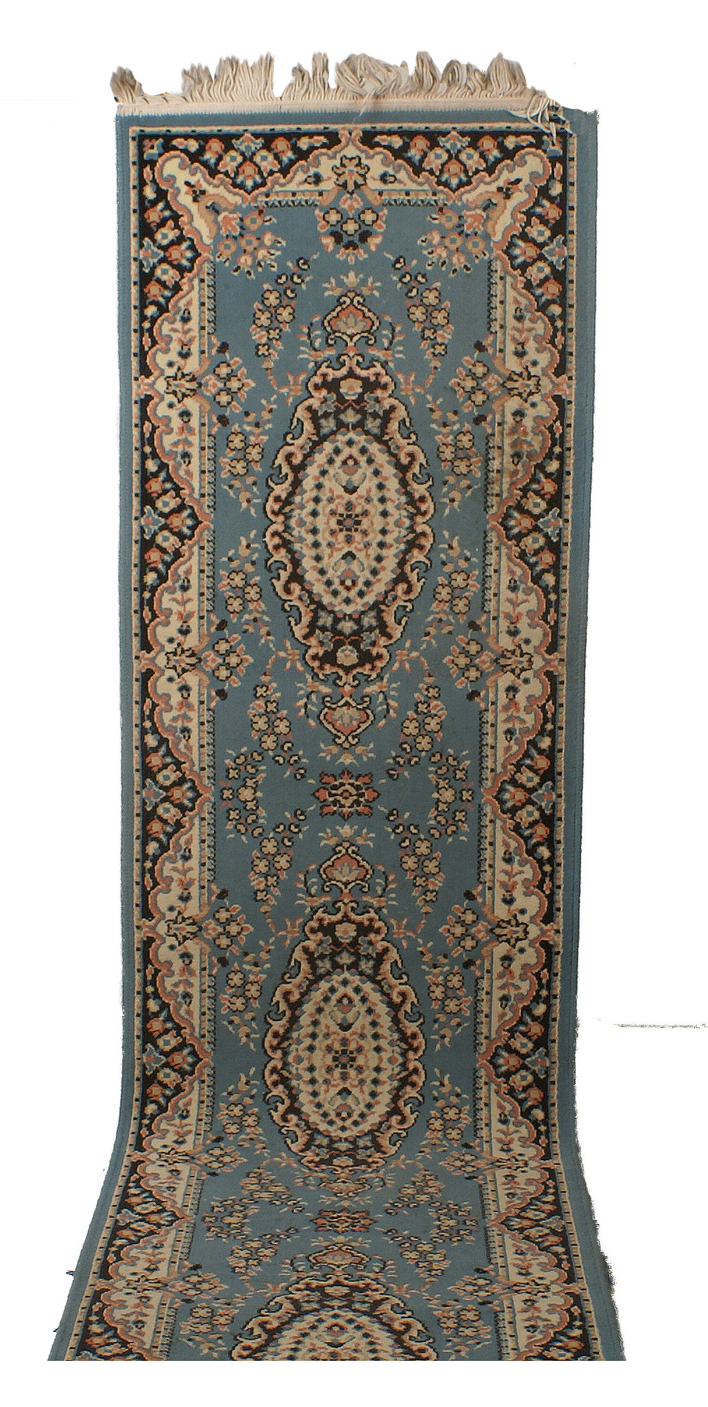 TAPPETO GUIDA manifattura orientale su fondo celeste 260x67 cm.