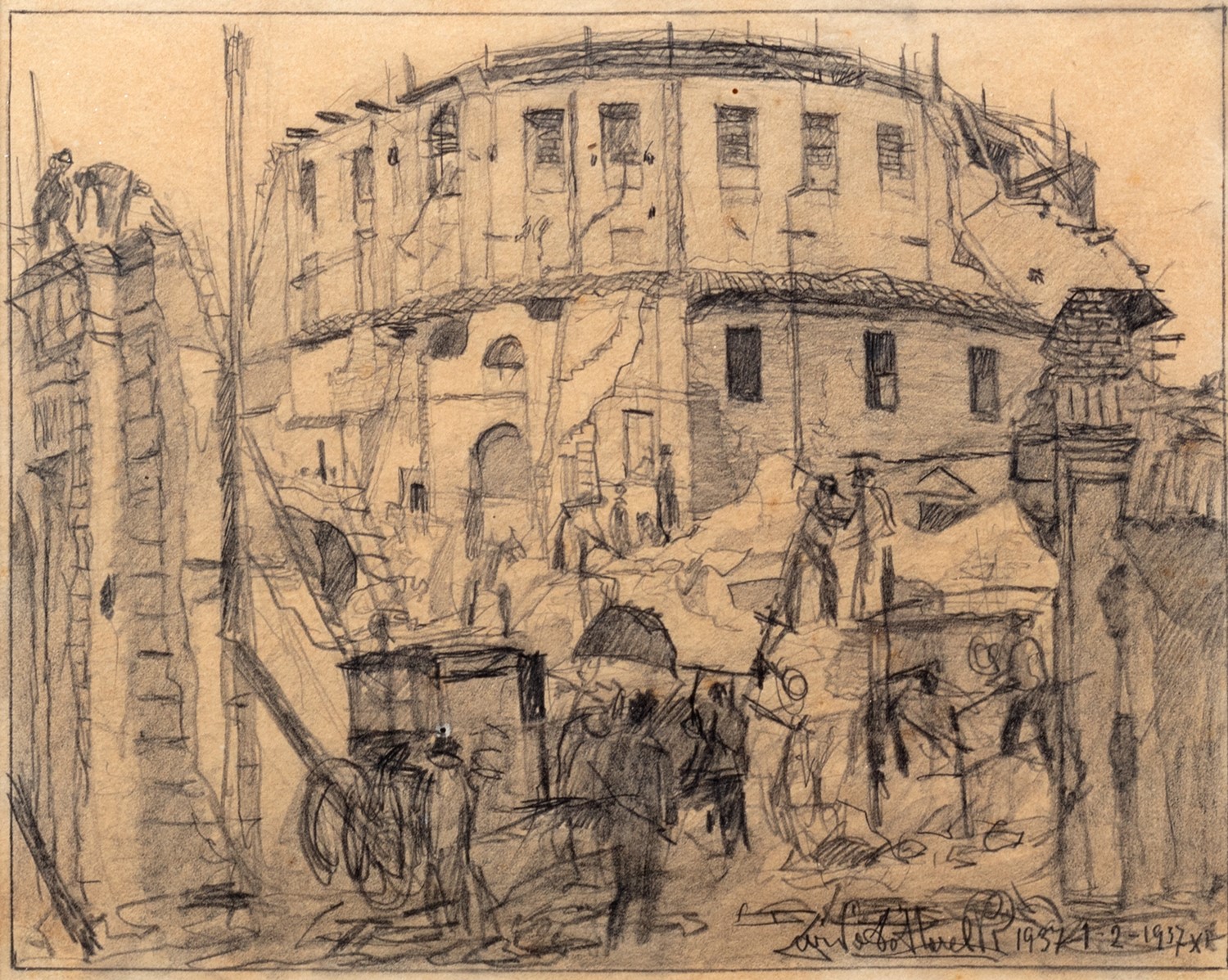 a) Scuola romana del XX secolo, Roma, le demolizioni all'Augusteo, 1937
