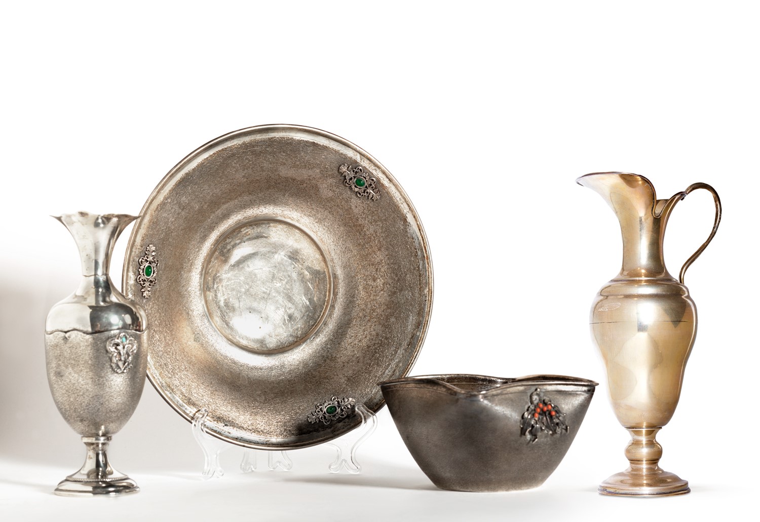 composto da versatoio, un'alzatina con pietre dure, una ciotola e un vasetto