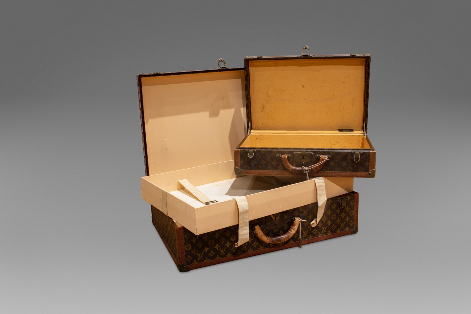 Lot 99 | Louis Vuitton - Set di due valigie di misure diverse in pelle logata, interno in tela con scomparti removibili (la più grande), finiture in pelle con dettagli in ottone, con chiavi