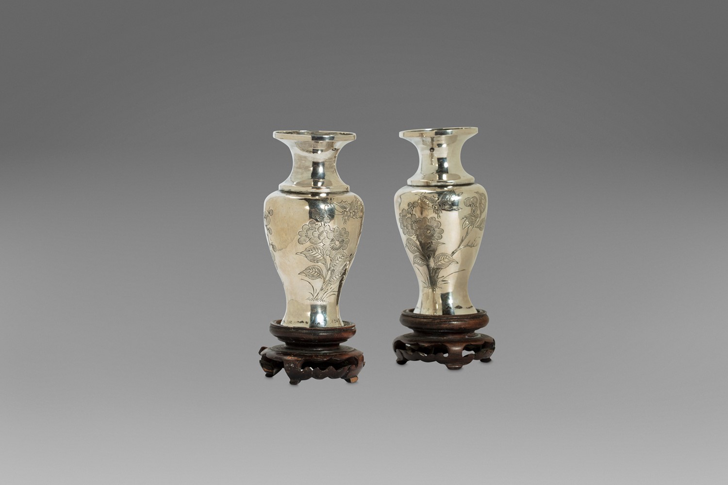 Due piccoli vasi in argento con decorazioni floreali, Cina, secolo XX