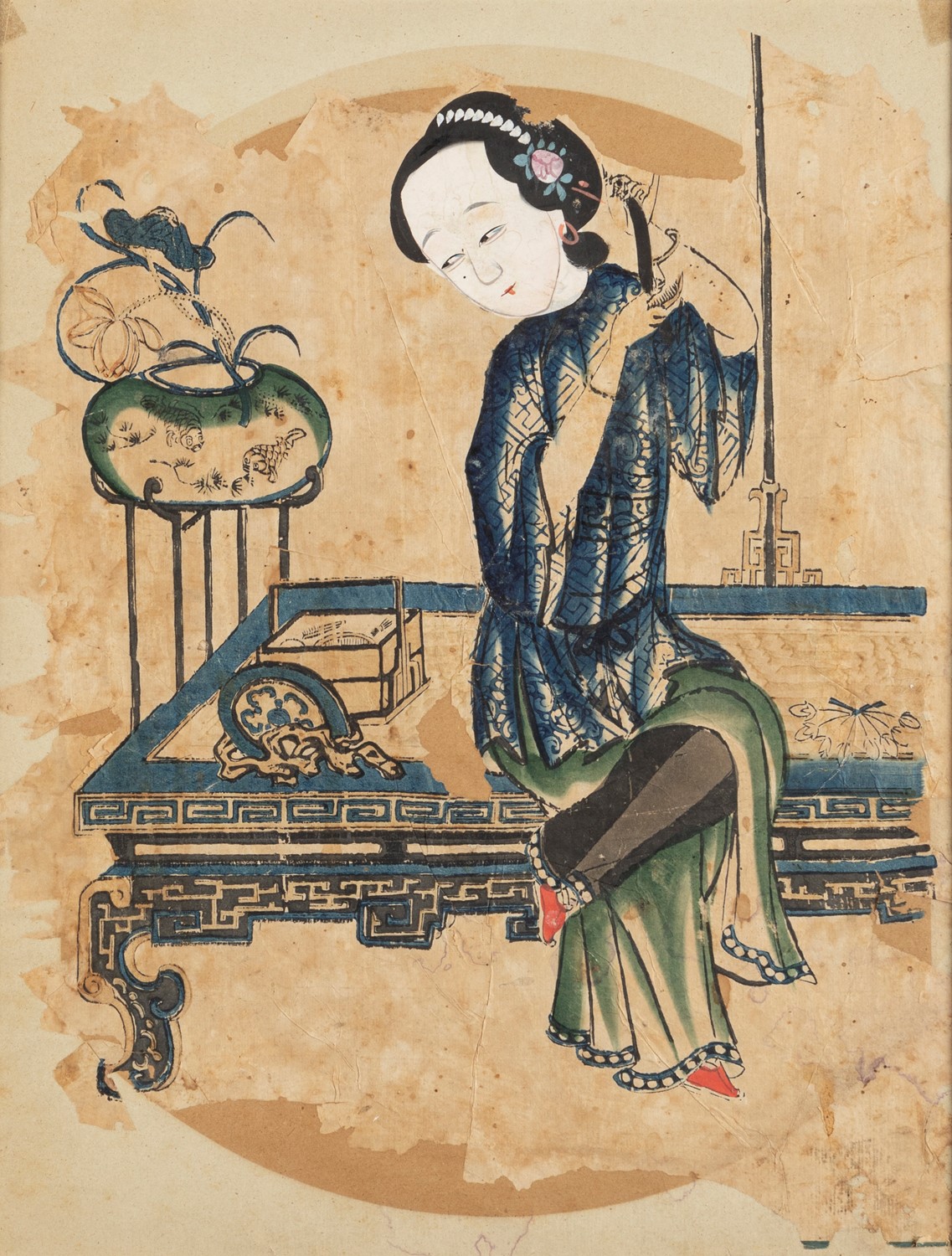 Quattro incisioni con interventi a tempera e acquerello, Cina secolo XIX
