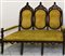 a 3 posti in noce finemente scolpito a motivi di gusto neogotico con sedute e schienali in velluto