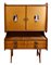 CREDENZA ANNI '50 in legno biondo con maniglie e placche in ceramica di...