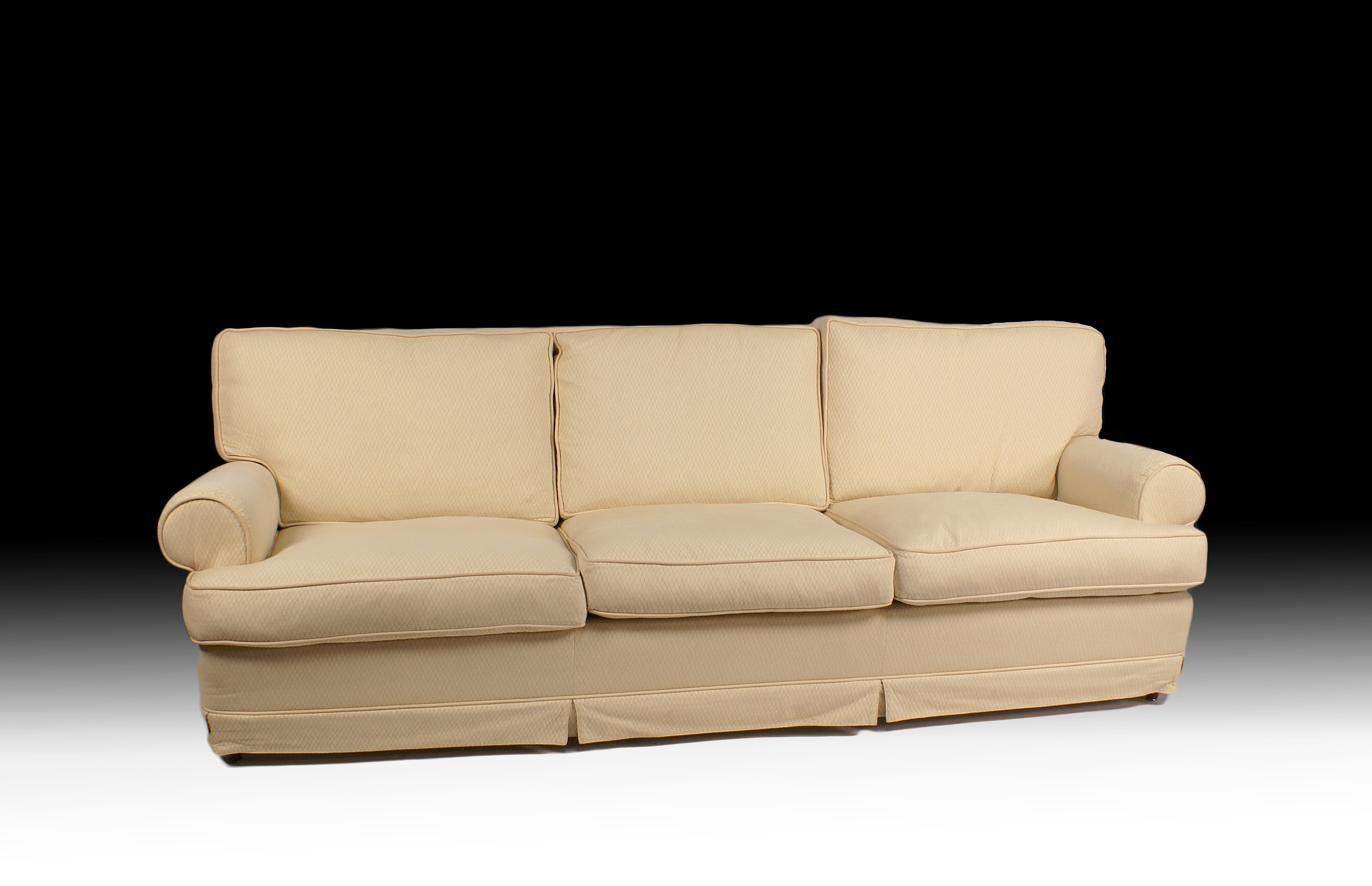 DIVANO TRE POSTI interamente imbottito e rivestito in tessuto 84x245x90 cm.