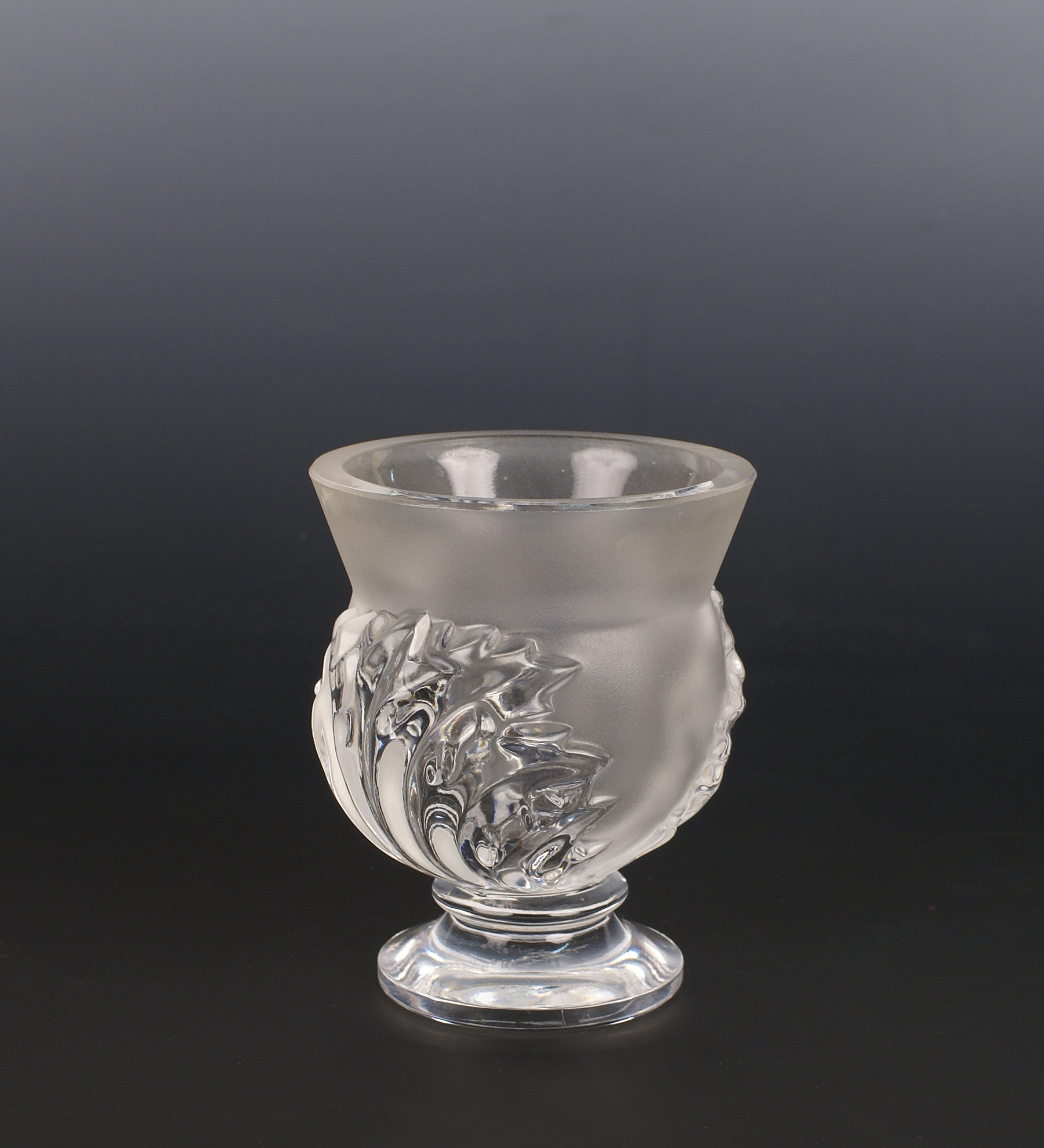 PICCOLO VASETTO Lalique Francia in cristallo liscio e satinato, firmato sotto la base h. 12 cm.