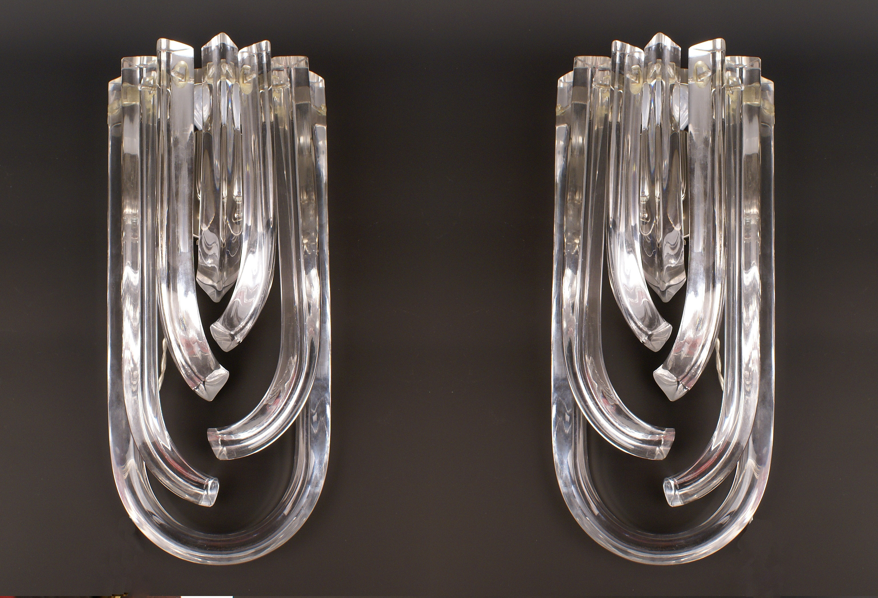 COPPIA DI APPLIQUES IN VETRO anni 70 circa ad una luce composte ciascuna da sei elementi verticali 39x17x10 cm.