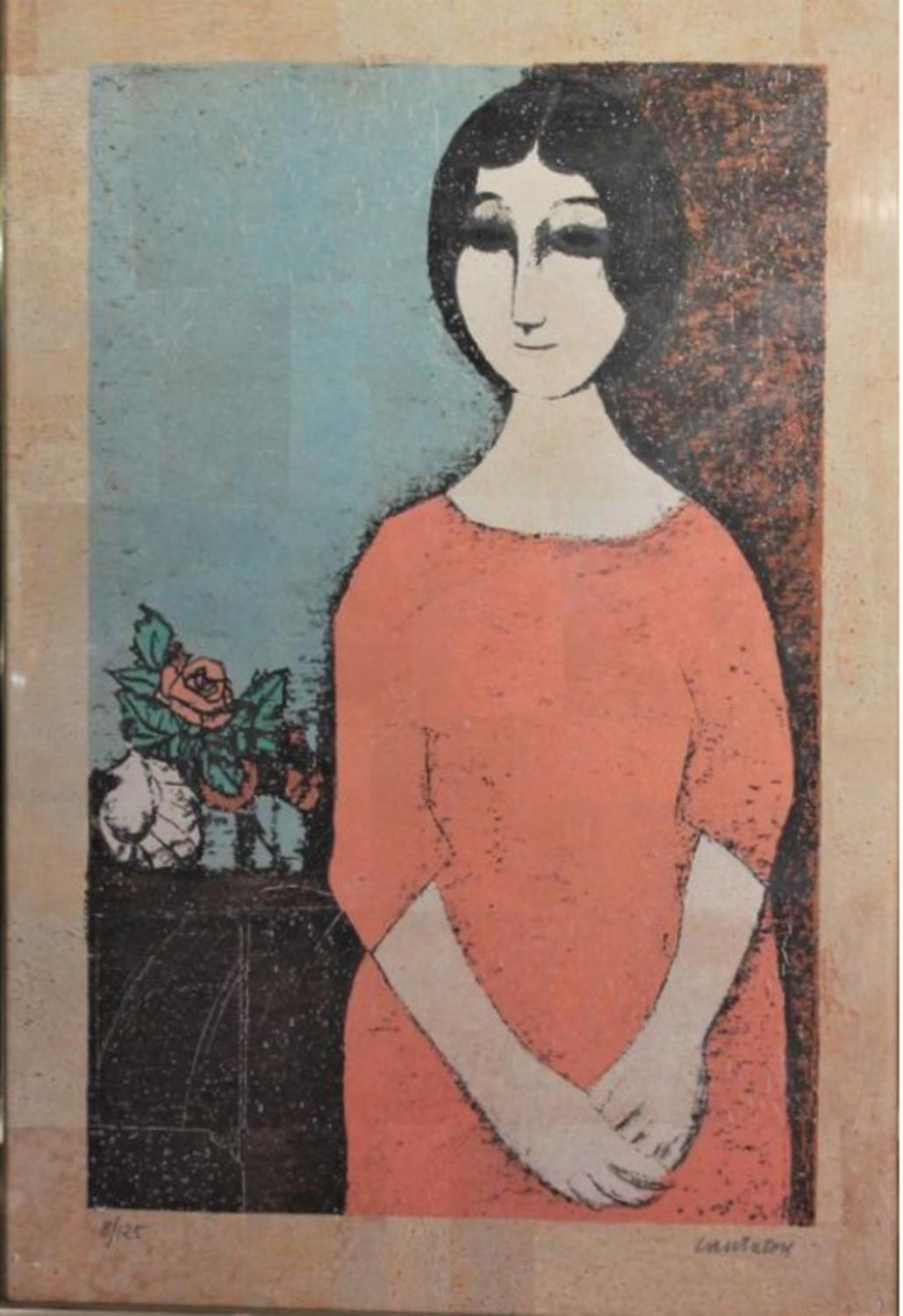 Domenico Cantatore SENZA TITOLO litografia su sughero, cm 70x50 firma es....