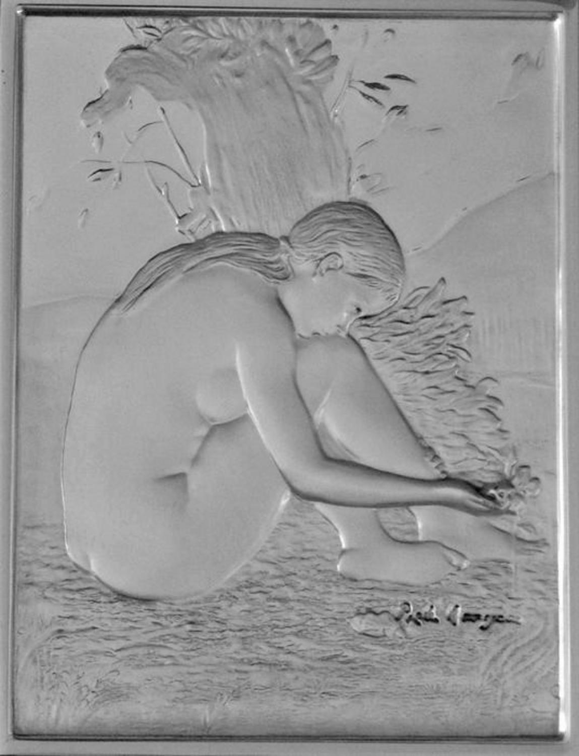 Pietro Annigoni IL GERMOGLIO bassorilievo coniato in argento 925/1000, cm...