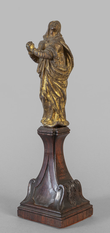 Madonna, scultura in bronzo dorato poggiante su base in palissandro, Roma sec.XVII