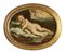Scuola genovese sec.XVII "Gesù Bambino dormiente con i simboli della Passione" olio di forma ovale, cornice coeva in legno intagliato e dorato