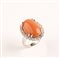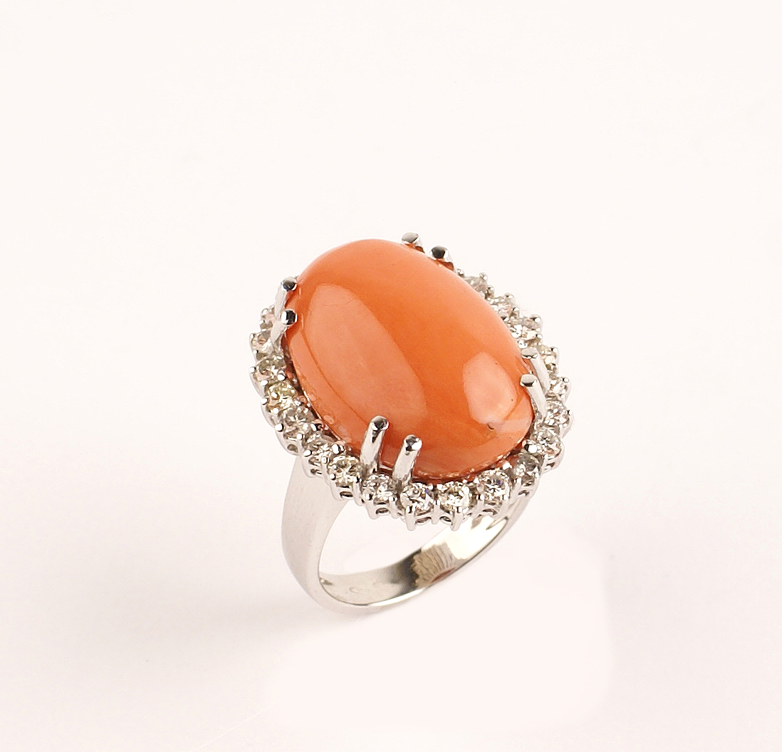 ANELLO IN ORO BIANCO 18KT CON CORALLO circondato da diamanti taglio brillante...