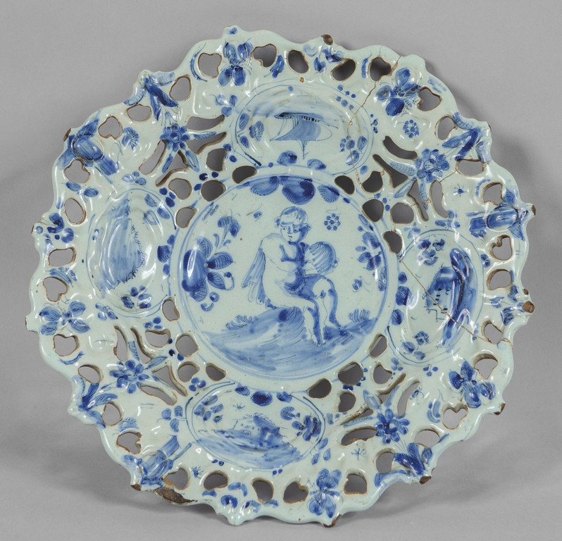 Alzata traforata in maiolica bianca e blu, Savona sec.XVIII