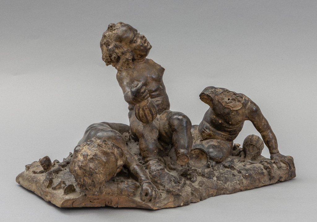 Giochi di putti, scultura in terracotta, Francia sec.XVIII (mancanze e rotture)