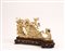 GRUPPO IN AVORIO Cina inizi del XX Sec. finemente scolpito ed intagliato a raffigurare una divinità orientale e poggiante su base sagomata in legno 20x29x12 cm.