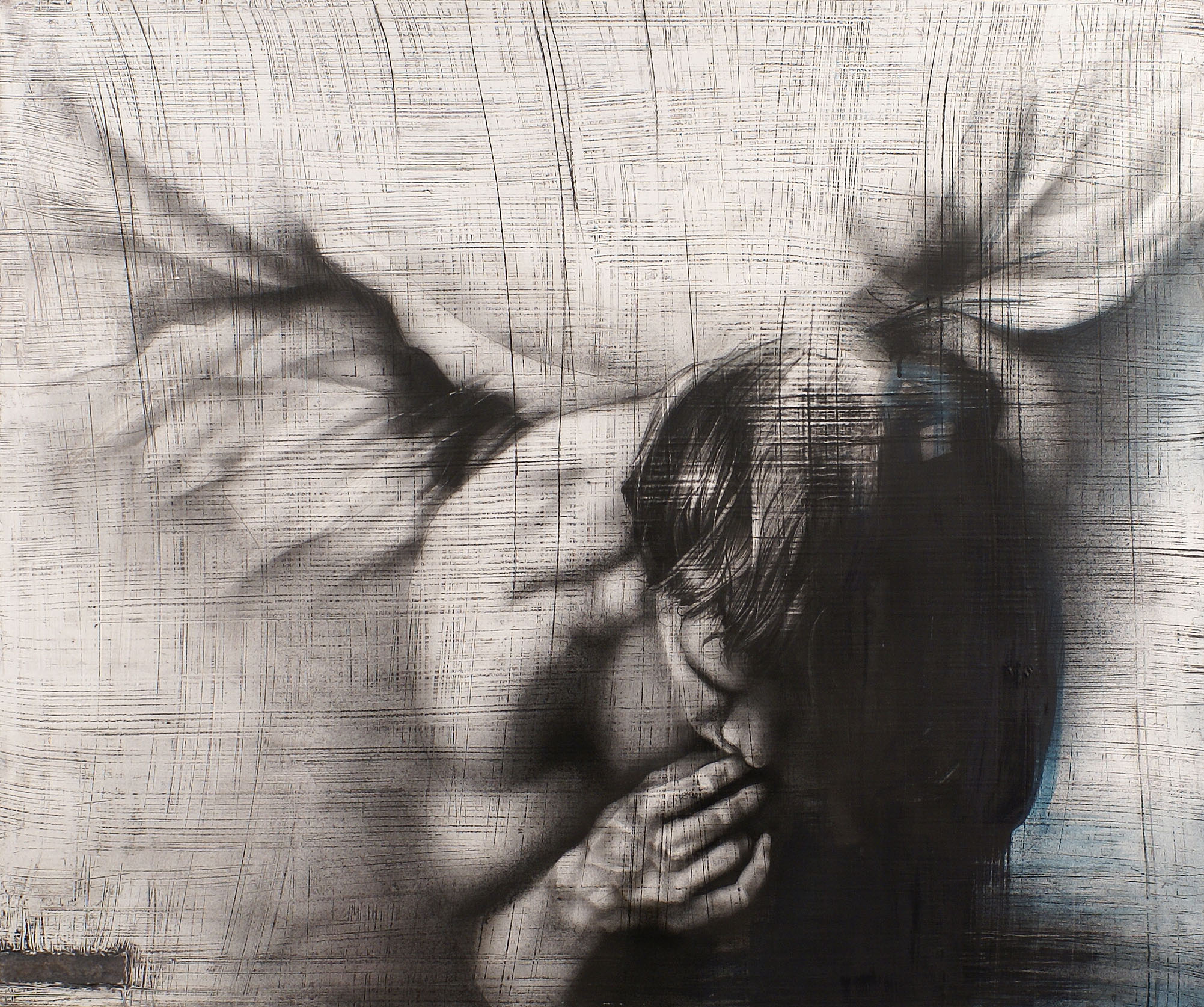 MICHELA CRISOSTOMI Terni 1976 Senza titolo acrilico su tela a fondo materico...