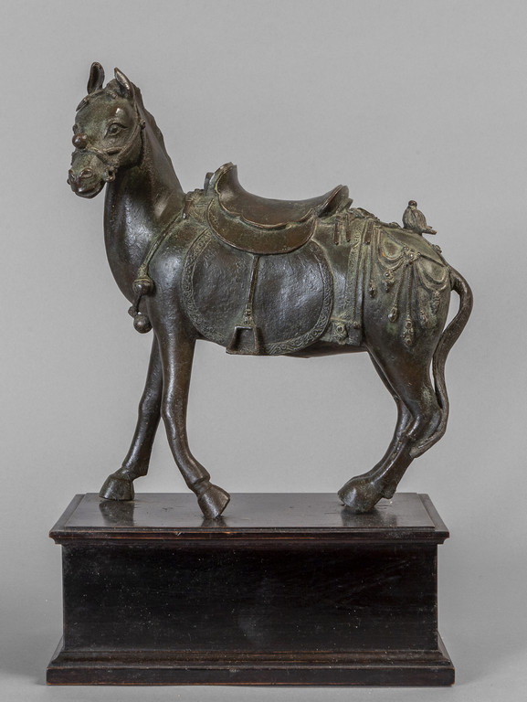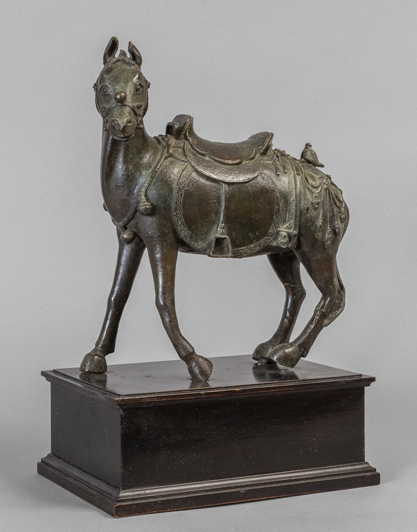 Cavallo, scultura in bronzo a patina scura, Mongolia sec.XVII (restauri ad una gamba)