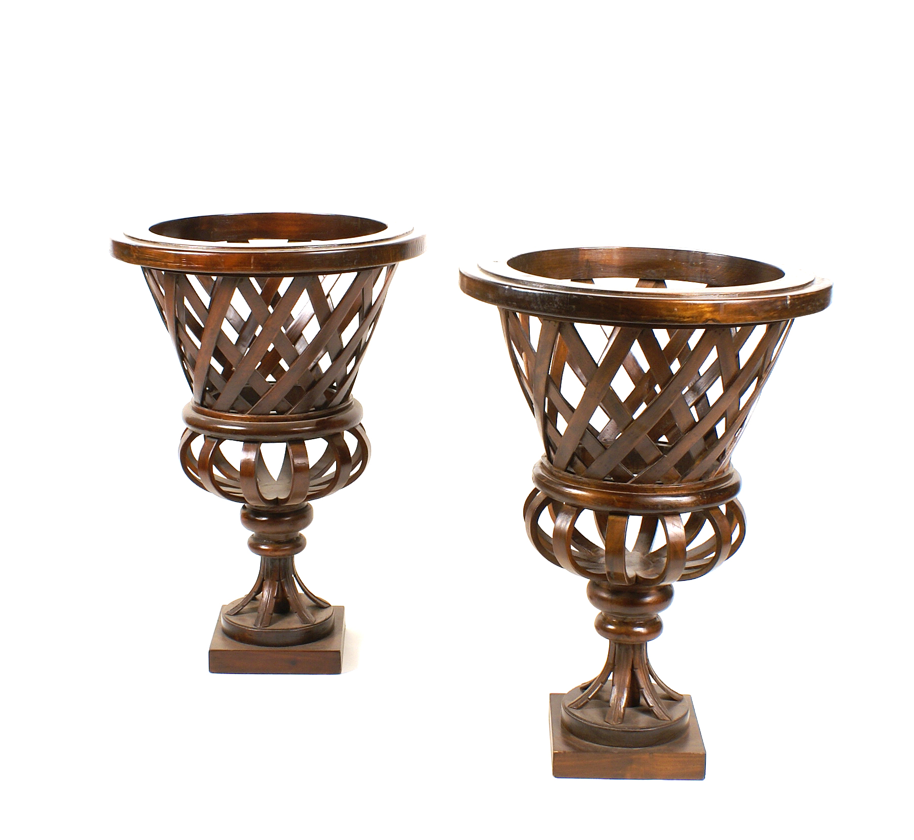 COPPIA DI FIORIERE IN LEGNO TINTO MOGANO Francia vecchia manifattura 83x60 cm.