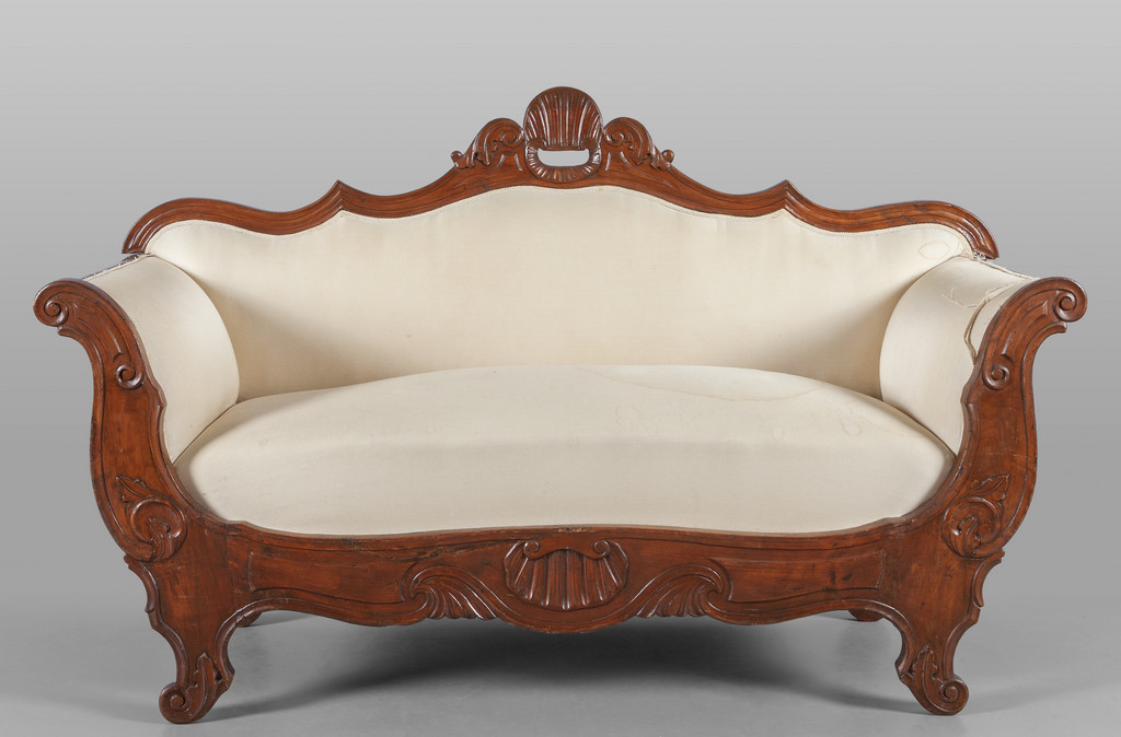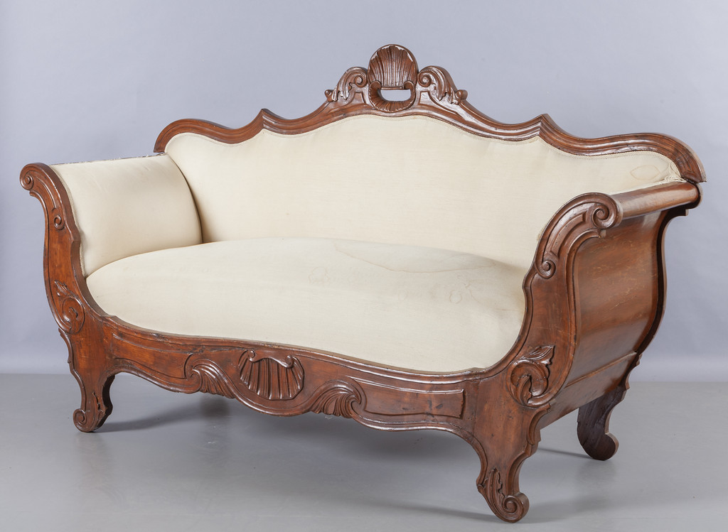Divano Luigi Filippo a barca in noce, sec.XIX