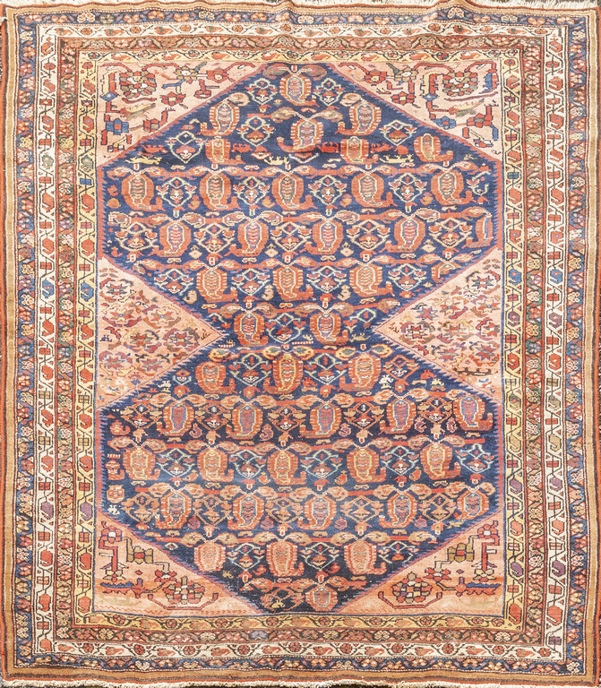 Tappeto Malayer Persia decorato con due rombi a fondo blu