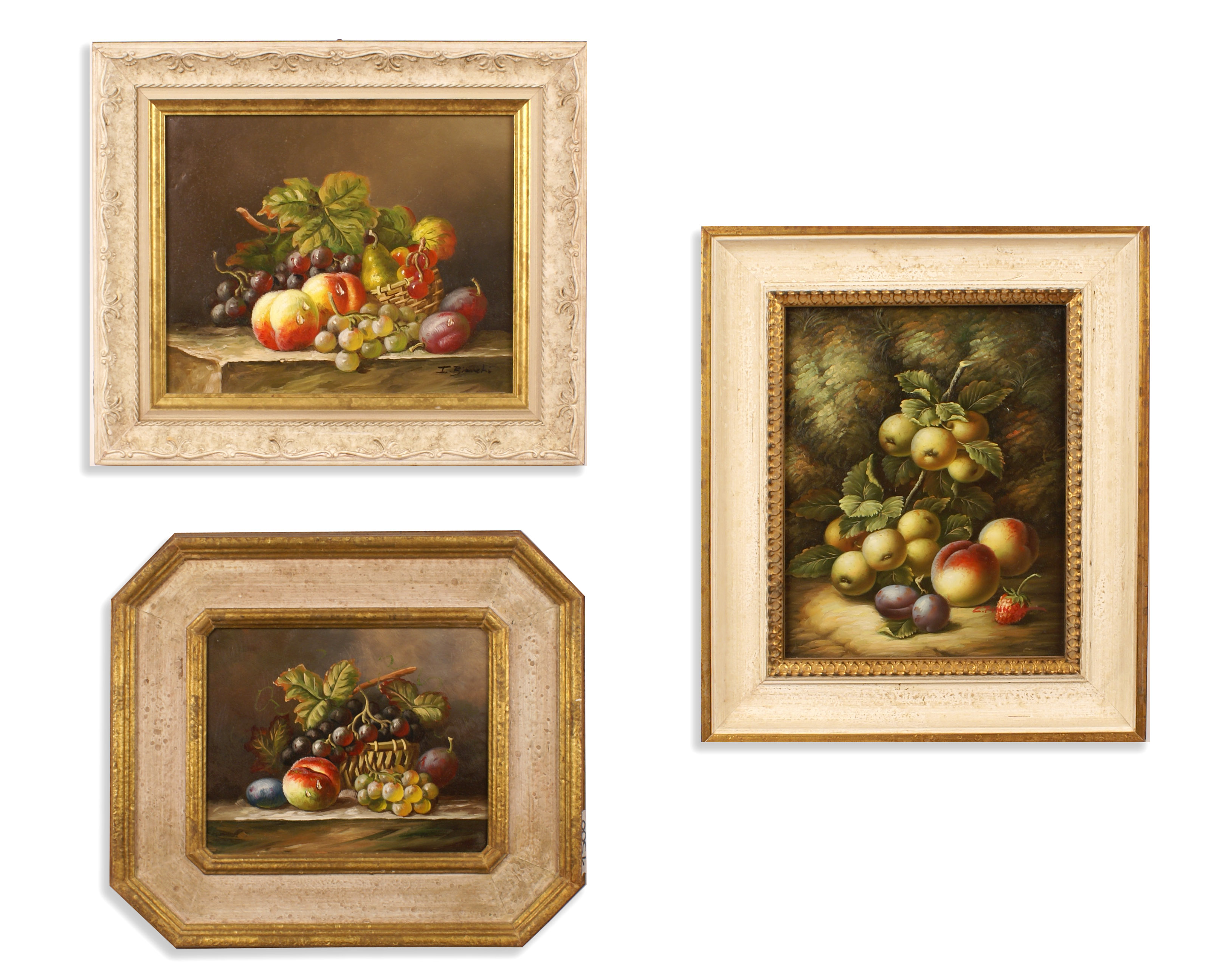 AUTORI DIVERSI XX Sec. Nature morte, tre oli su tela, entro cornici, misure...