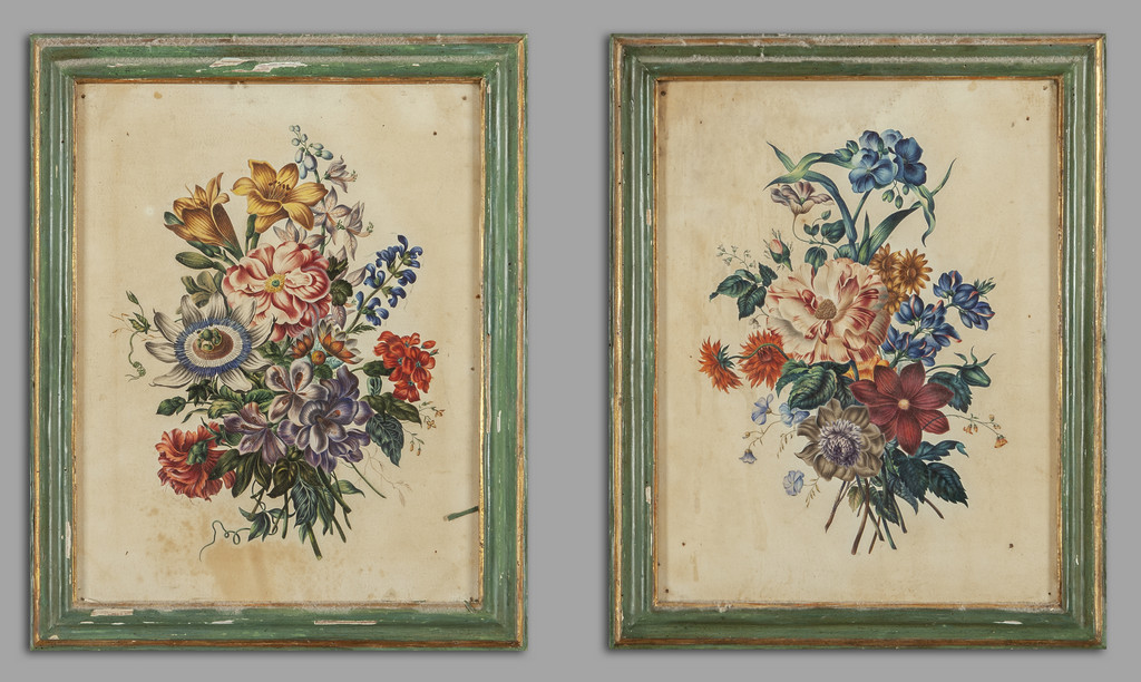 Fiori, coppia di disegni acquarellati, sec.XIX