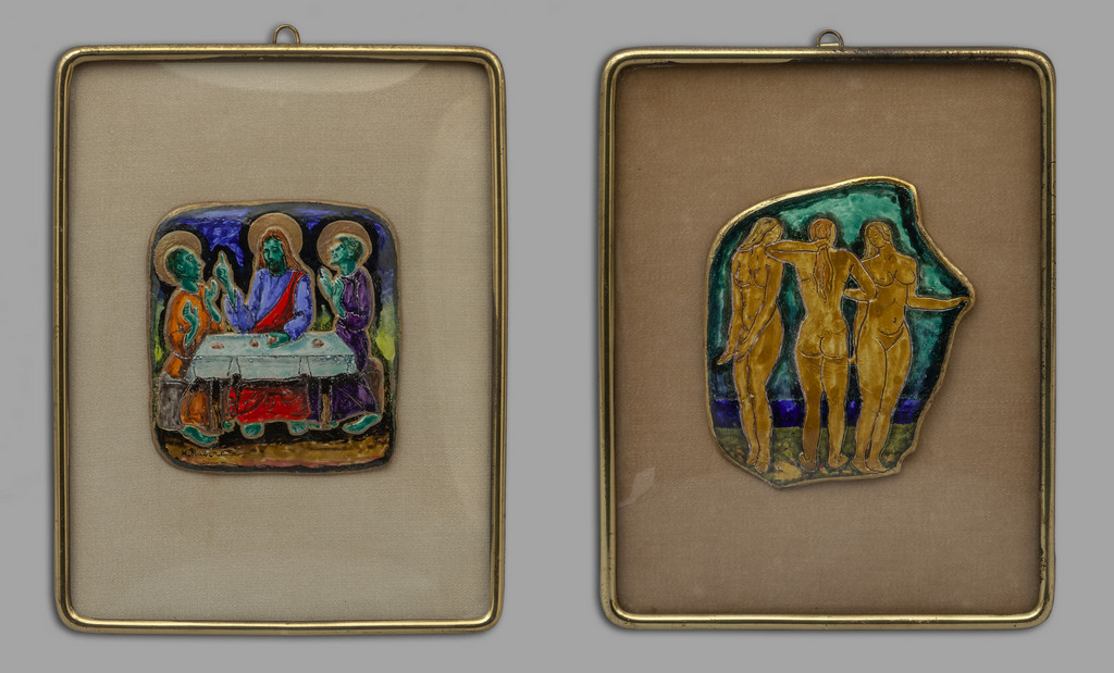 Lot 0722 | Coppia di smalti con figure, f.ti, metà