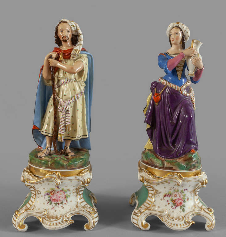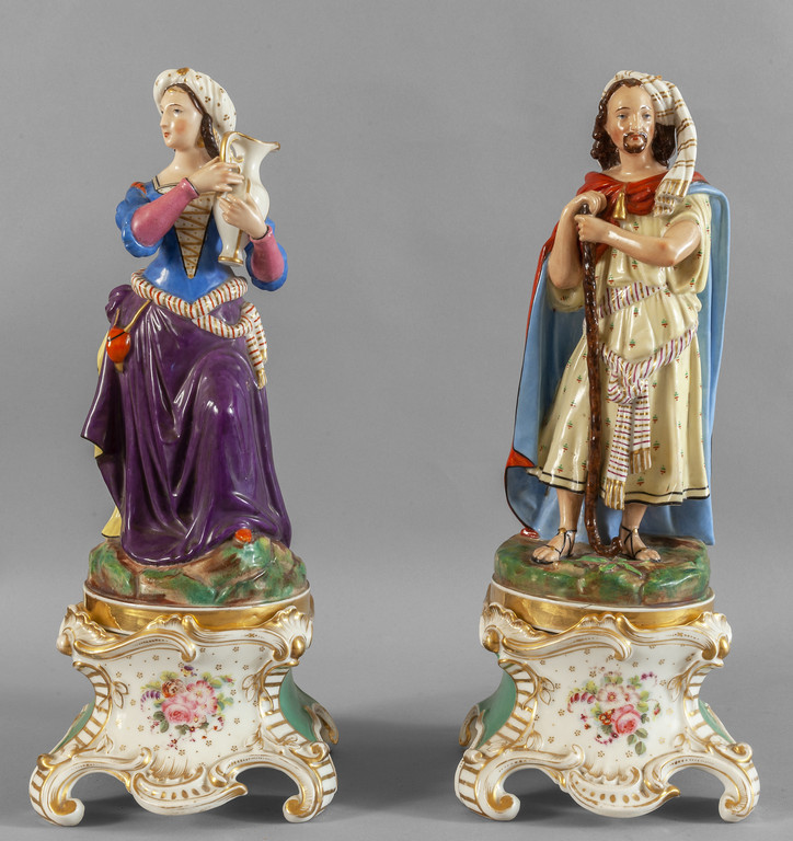 Rebecca ed Eliezer, due sculture in porcellana policroma Luigi Filippo, sec.XIX
