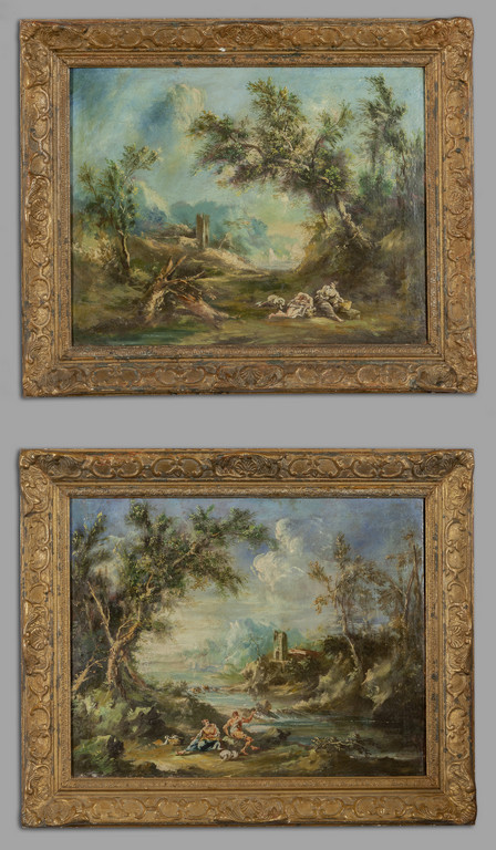 Scuola veneta sec.XVIII/XIX "Paesaggi con figure" coppia di olii