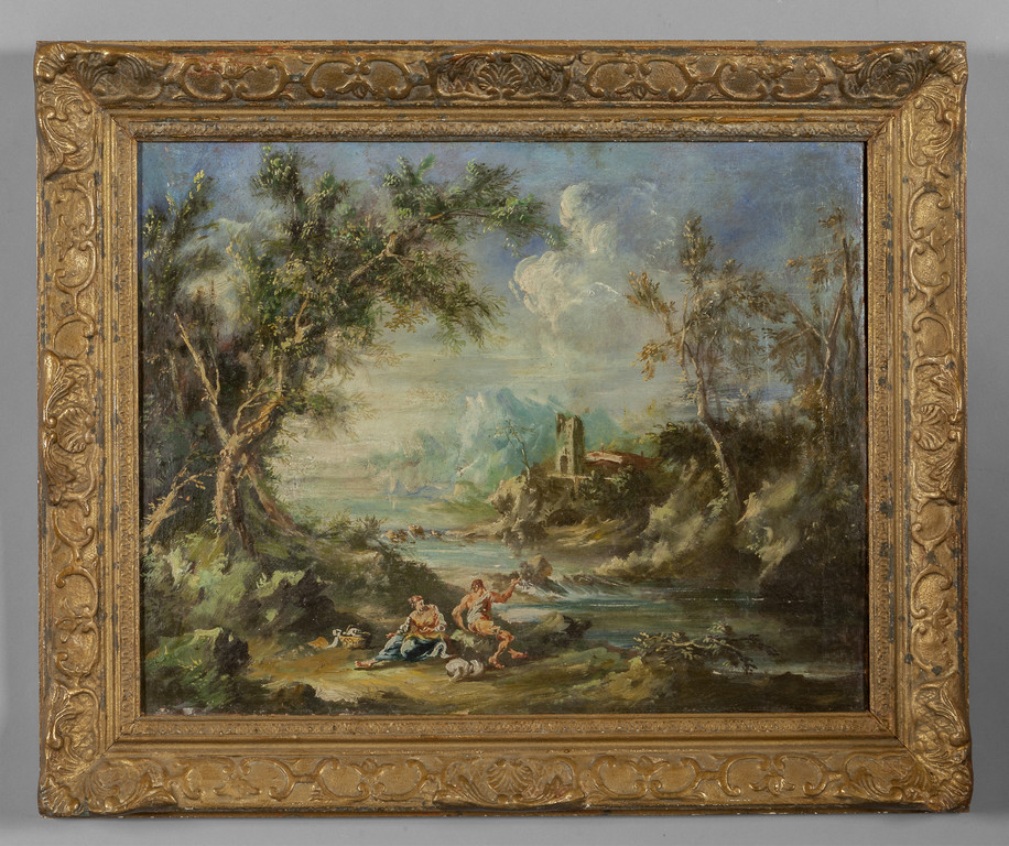 Scuola veneta sec.XVIII/XIX "Paesaggi con figure"