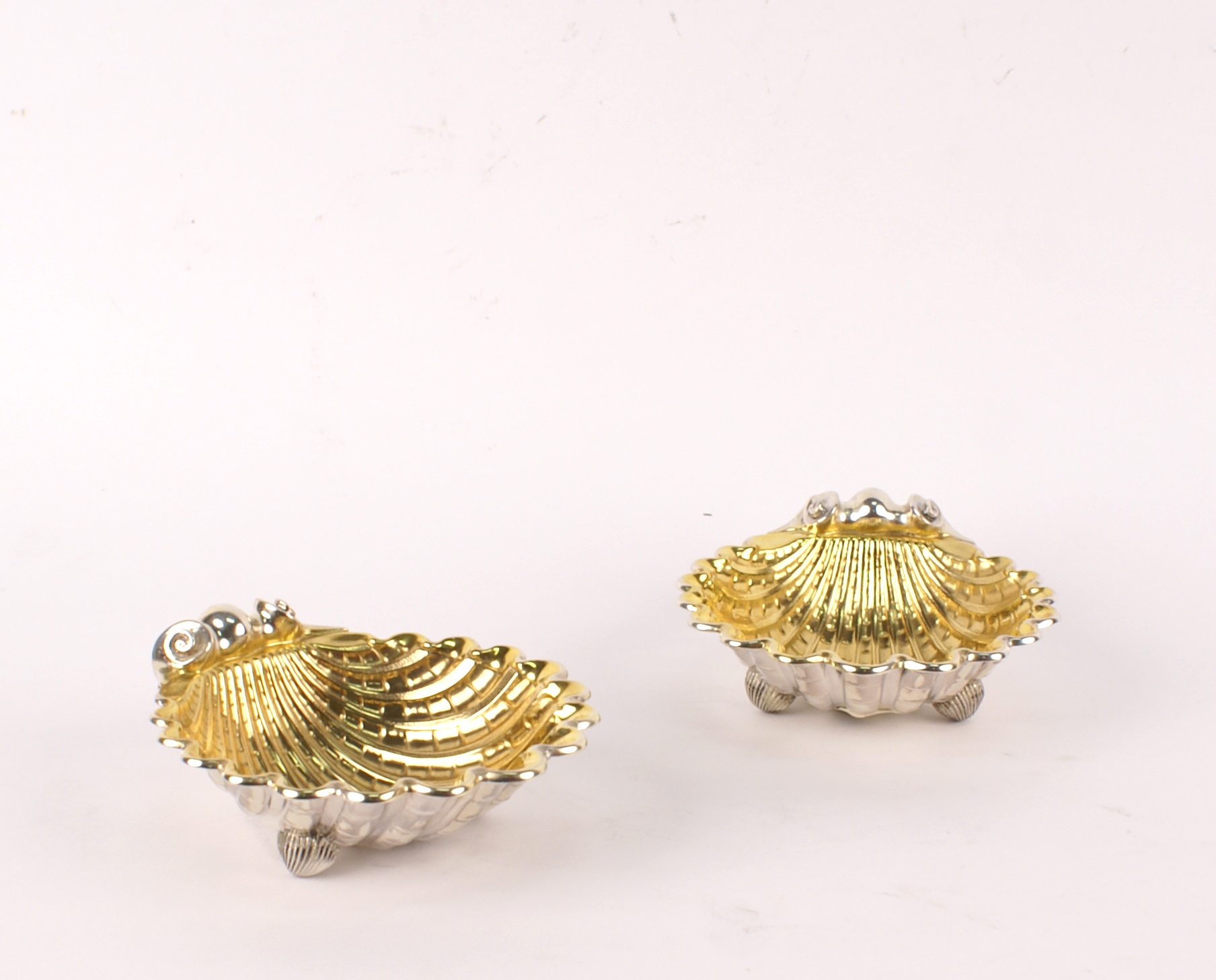 Lot 414 | COPPIA DI CONCHIGLIE IN ARGENTO E VERMEIL manifattura italiana cm. 14x12 360 gr.