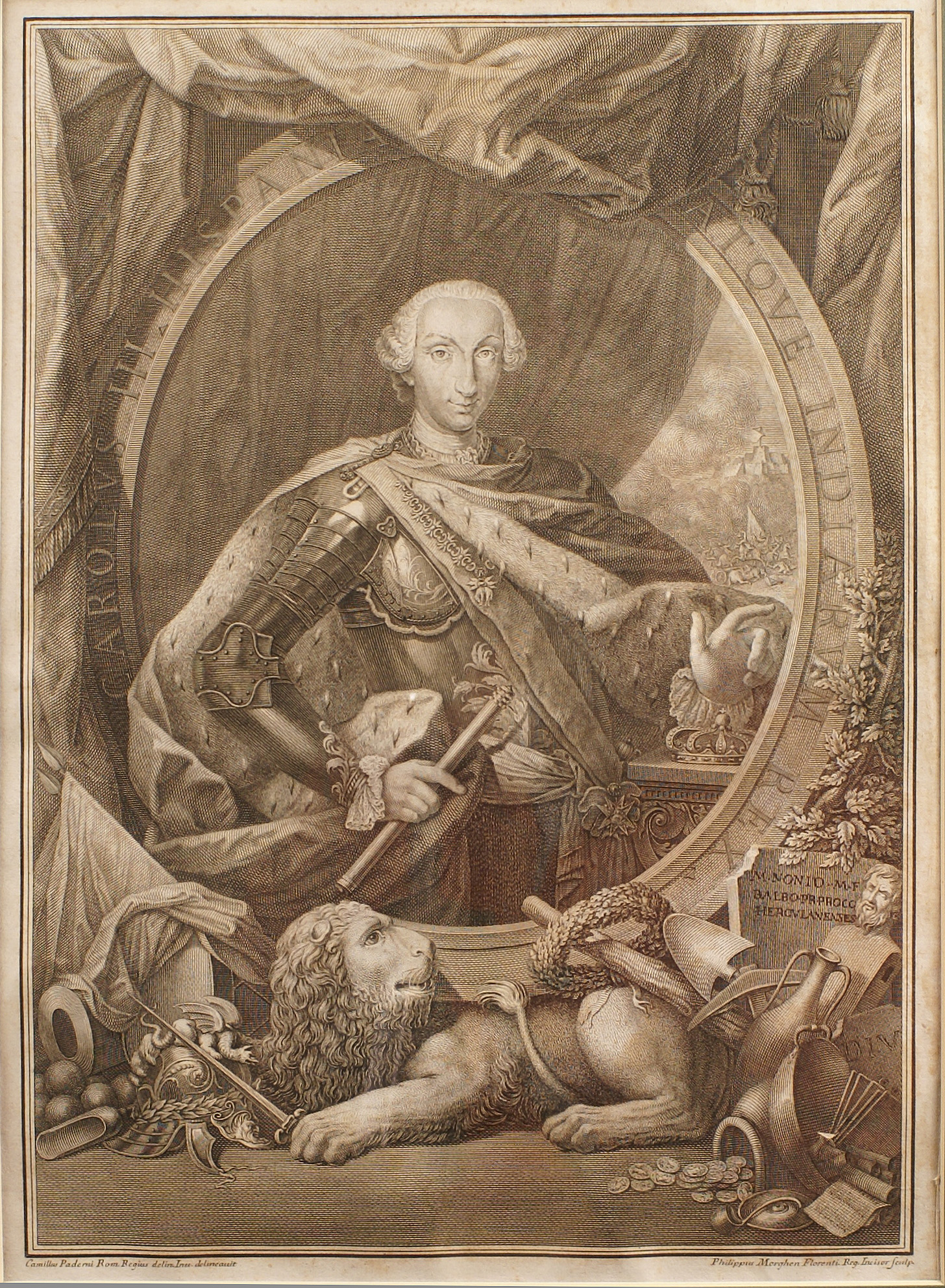P. MORGHEN 1770 circa Carlo III di Spagna, incisione entro cornice 47x34 cm.