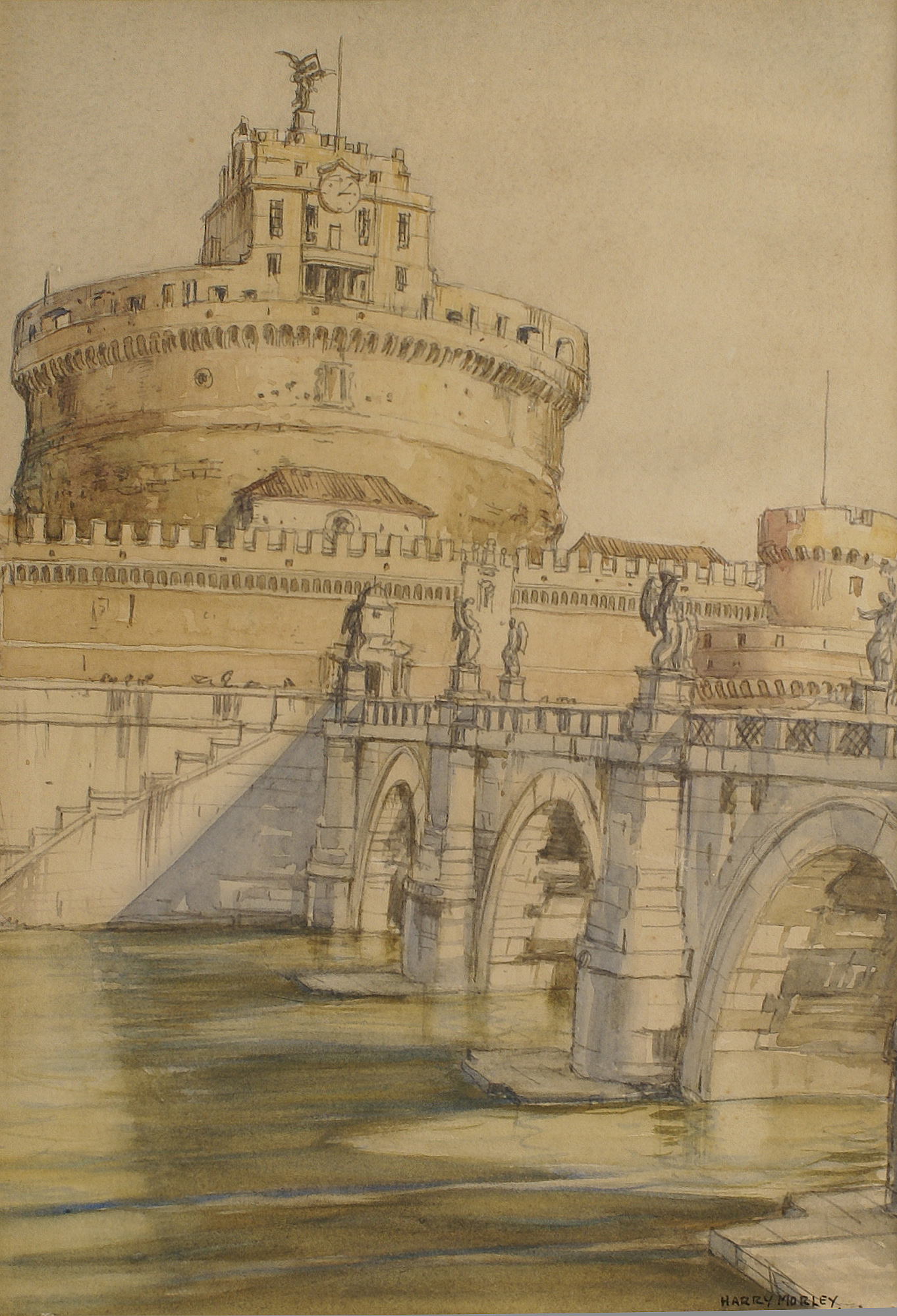 HARRY MORLEY Inghilterra 1881 - 1943 Scorcio di Castel S.Angelo, acquarello firmato in basso a destra, entro cornice 30x22 cm.