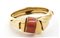 realizzato in oro giallo 18k, incastonato con corallo Cerasuolo (Corallium Elatius). Punzonato "750" e "1704 AL". Dimensione fronte 71 x 25 mm. Peso 71,7 gr. Stato di conservazione: ***** ottimo. Accompagnato da certificato di autenticità Ce.S.Ar. Centro Studi Archeometrici.