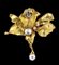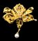 realizzata in oro 18k a forma di fiore, con diamanti di forma rotonda taglio brillante 0,60 ct ca., J-K, SI e perle "d'acqua dolce" di vari colori e forme. Punzonata "750" e "626 ROMA". Firmata "D'AVOSSA". Dimensioni 105 x 110 mm. Peso 104 gr. Stato di conservazione: *****ottimo.