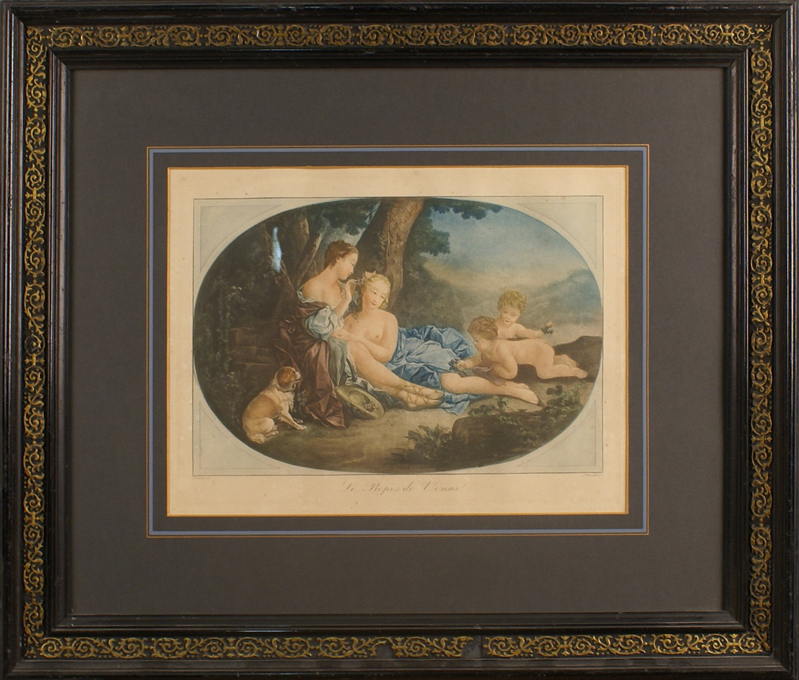 SCUOLA FRANCESE XIX Sec. Il riposo di Venere, stampa a colori entro cornice...