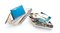 realizzati in oro bianco 18k, con inserti geometrici di di turchese, incastonati con diamanti di forma rotonda taglio brillante 0,80 ct ca., F-G, VVS. Dimensioni 40 x 25 mm. Peso 30,3 gr. Stato di conservazione: ***** ottimo.