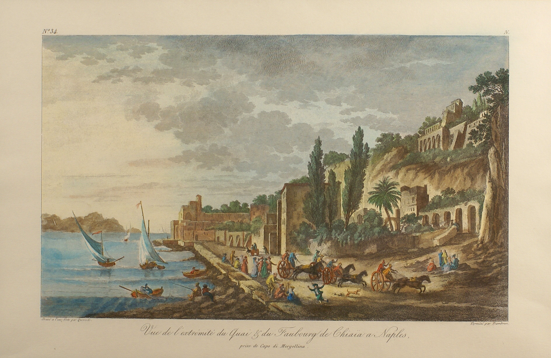 VEDUTA DI MERGELLINA stampa a colori entro cornice 30x43 cm.