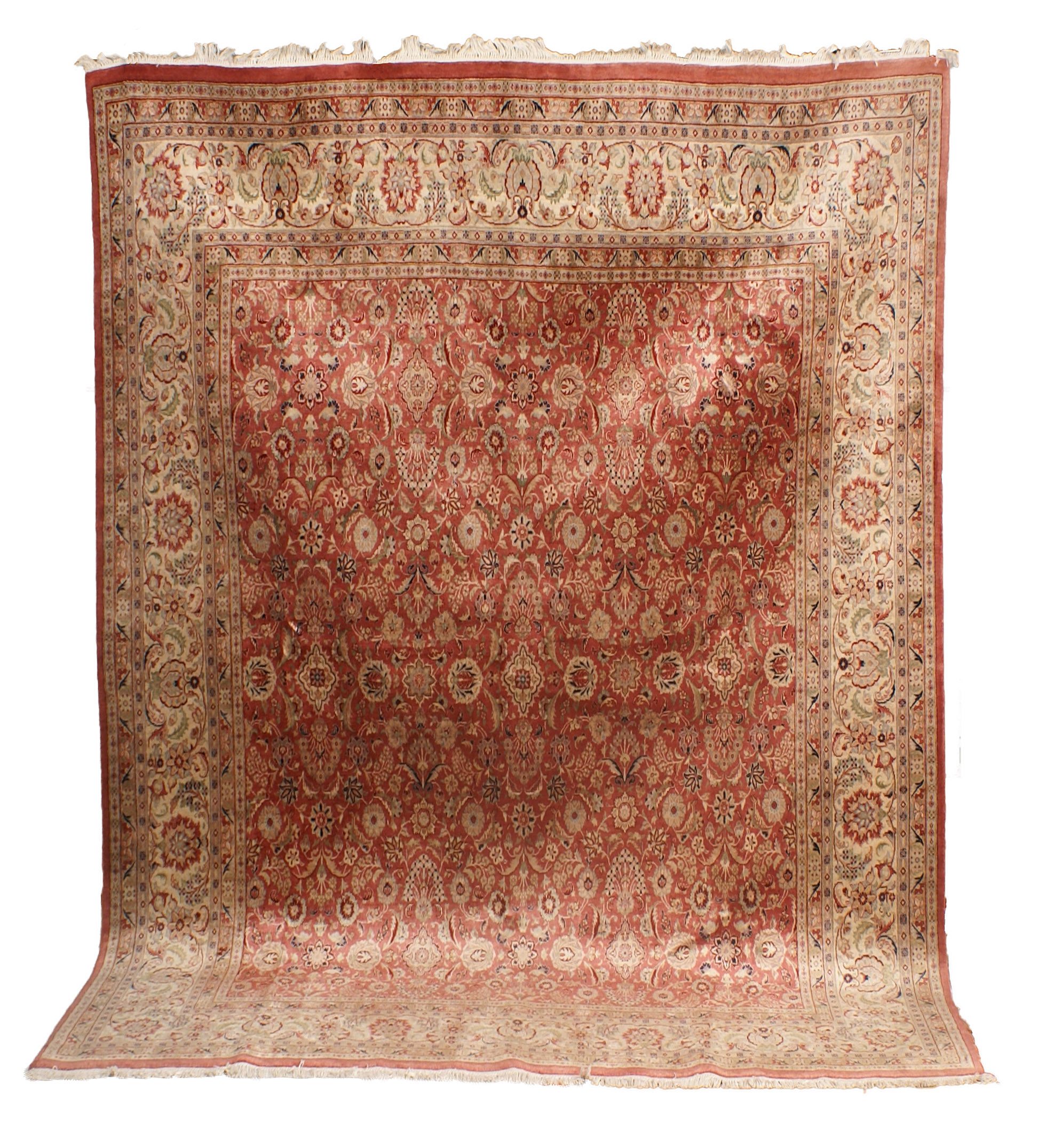TAPPETO Persia lana e seta su fondo rosa e beige 250x268 cm.