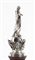 raffigurante la figura della Vergine cosi' come raffigurata nella colonna dedicata al dogma dell’Immacolata Concezione In piazza Mignanelli a Roma, a pochi passi dalla Scalinata di Trinità dei Monti, opera dello scultore Giuseppe Obici e inaugurata l’8 dicembre 1857. La scultura poggia su un basamento a plinto in marmo nero riportante l'iscrizione "18 Aprile 1867; in alto, gli emblemi degli evangelisti sorreggono il globo terrestre e la luna, su cui si eleva l’imponente figura della Vergine. Punzonata con il marchio camerale in uso a Roma (Stato Pontificio) dopo il 1815 per l'argento al titolo a 10 once e 16 denari (889/1000), argentiere "G53N" Giuseppe II Nelli 1826-1873. (Ref. Costantino Bulgari, Argentieri Gemmari e Orafi d’Italia, Parte Prima - Roma, Tomo 1, p. 197; Palombi, Roma 1980 marchio n° 764). Altezza 22 cm, base 6,2 cm. Peso 635 gr. Stato di conservazione: **** buono.