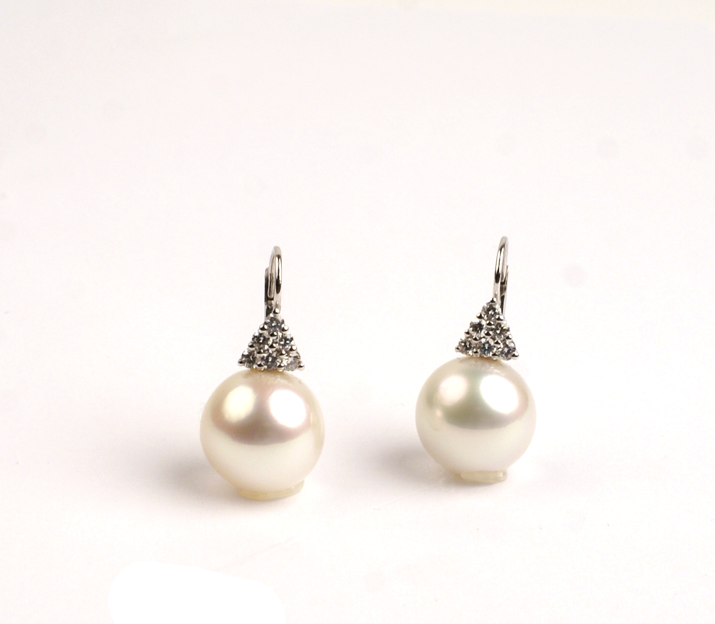 ORECCHINI A MONACHINA IN ORO BIANCO 18KT con due perle australiane di mm. 16 circa e diamanti taglio brillante per 0.70 punti circa 14,2 gr.
