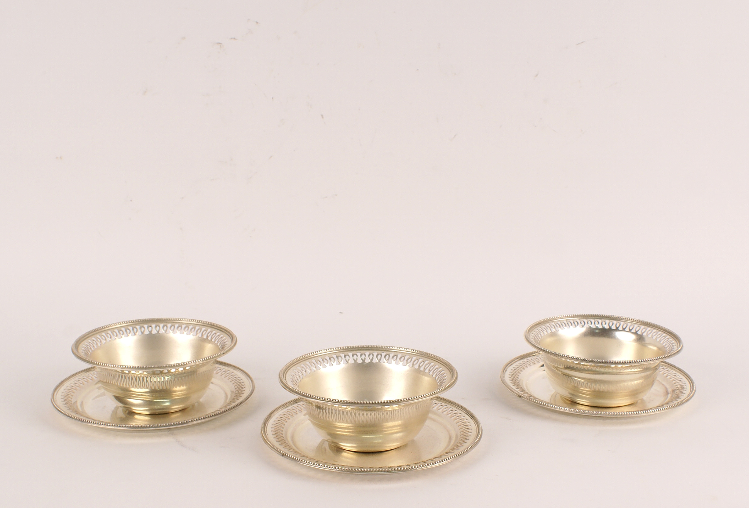 DODICI COPPETTE IN ARGENTO CON RELATIVI PIATTINI manifattura italiana a corpo liscio con profilo traforato 3060 gr.