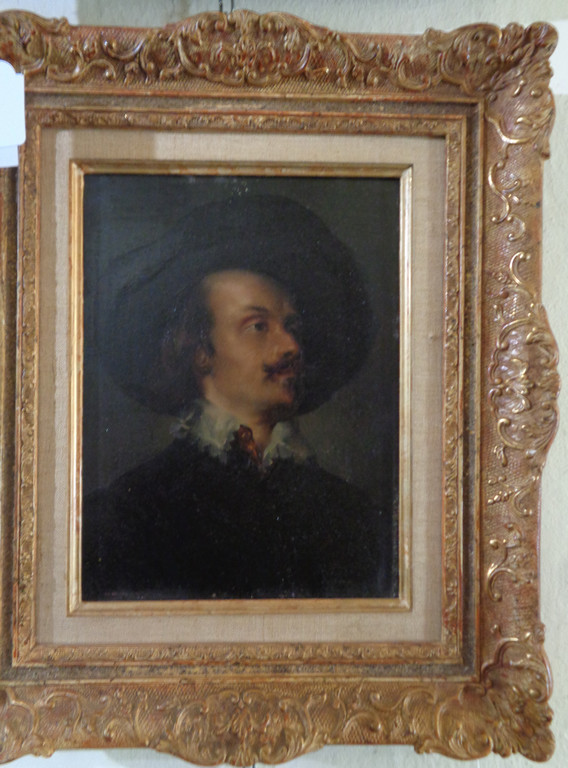 Scuola francese "Gentiluomo con cappello nero" olio su tavola