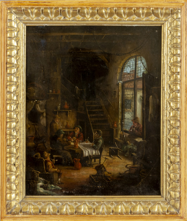 Scuola fiamminga sec.XIX "Interno di osteria" olio