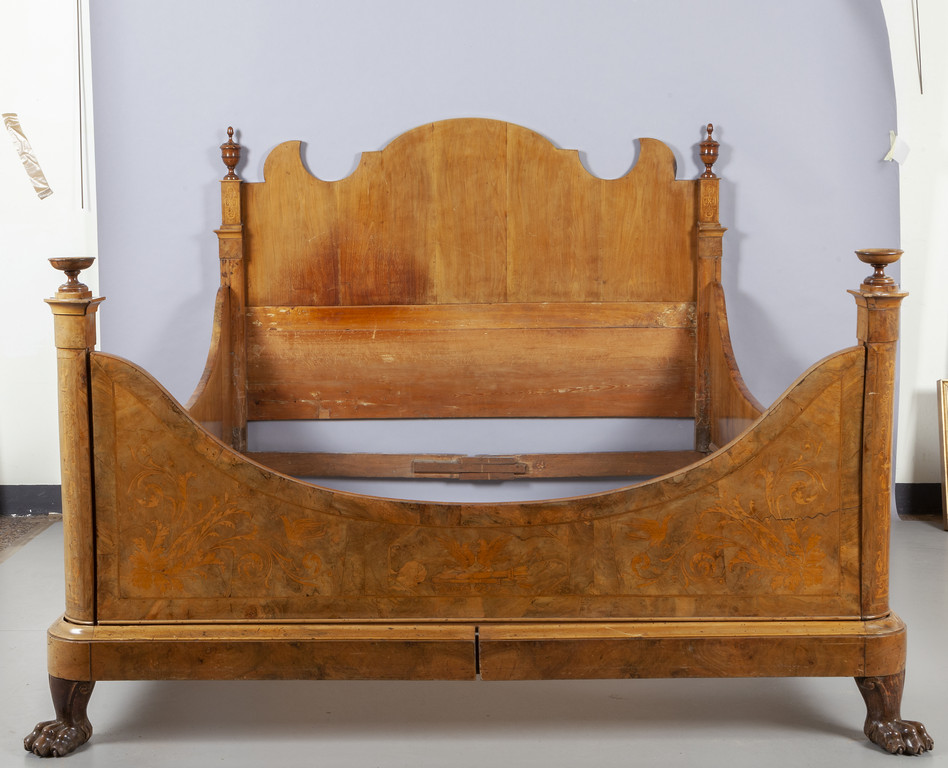 Lot 0942 | Letto matrimoniale Carlo X lastronato in noce e