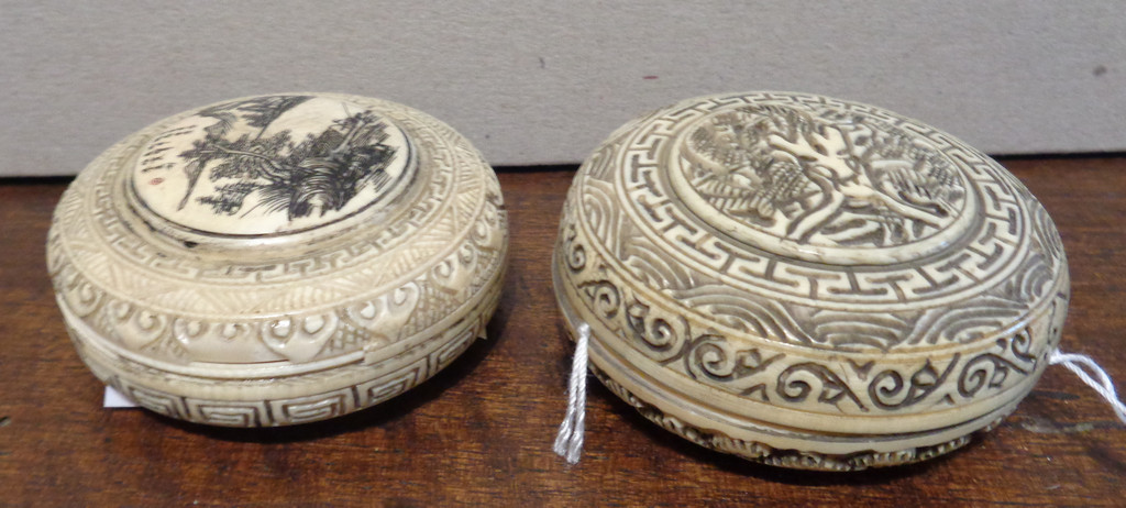Due scatole in avorio, Cina sec.XIX (una con piccolo difetto)