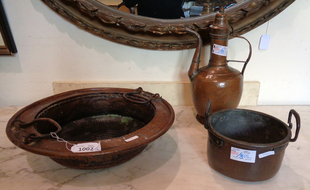 Lot 1002 | Catino in rame (diam.cm.42), brocca in rame