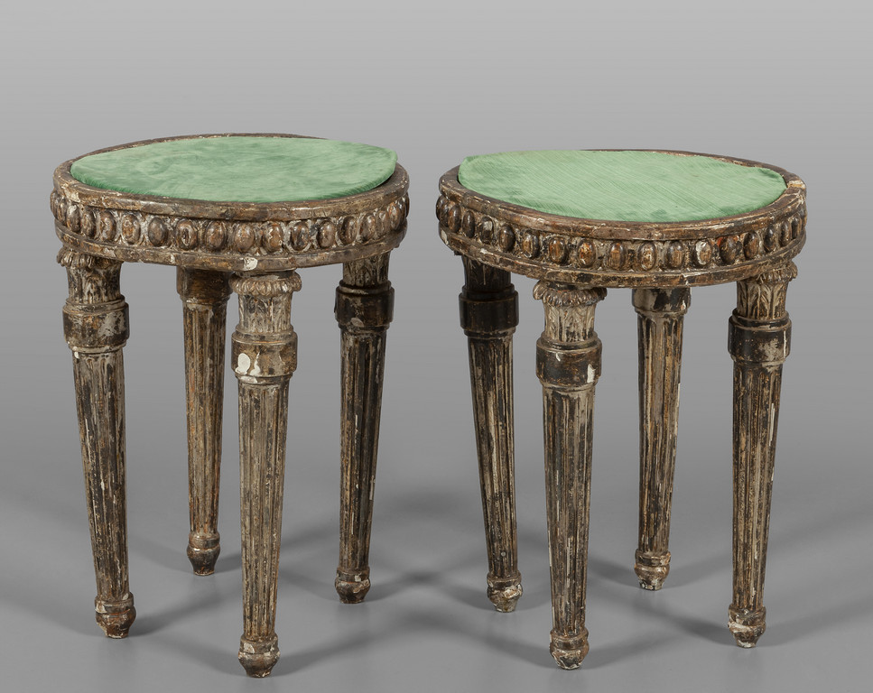 Coppia di sgabelli Luigi XVI in legno intagliato e dorato a mecca, Napoli II metà sec.XVIII