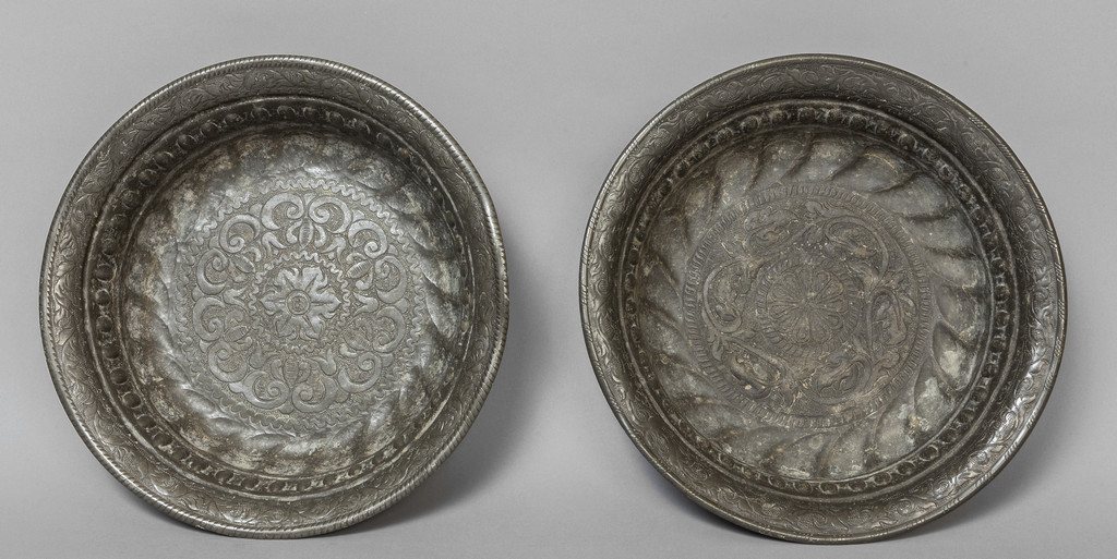 Coppia di bacili in peltro, sec.XVIII