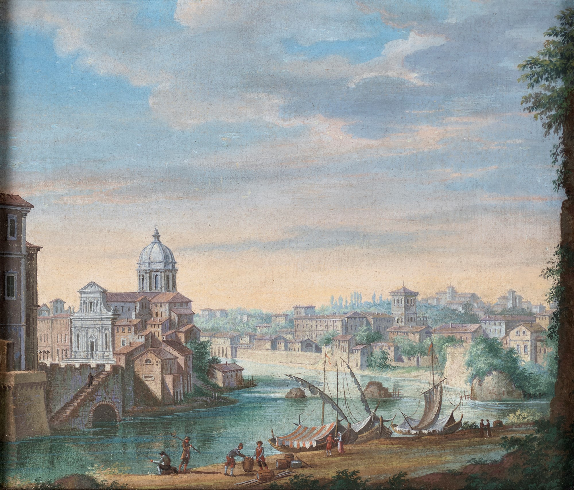 Lot 41 | Pittore fine del XIX secolo - a) Veduta del Tevere con la basilica di San...